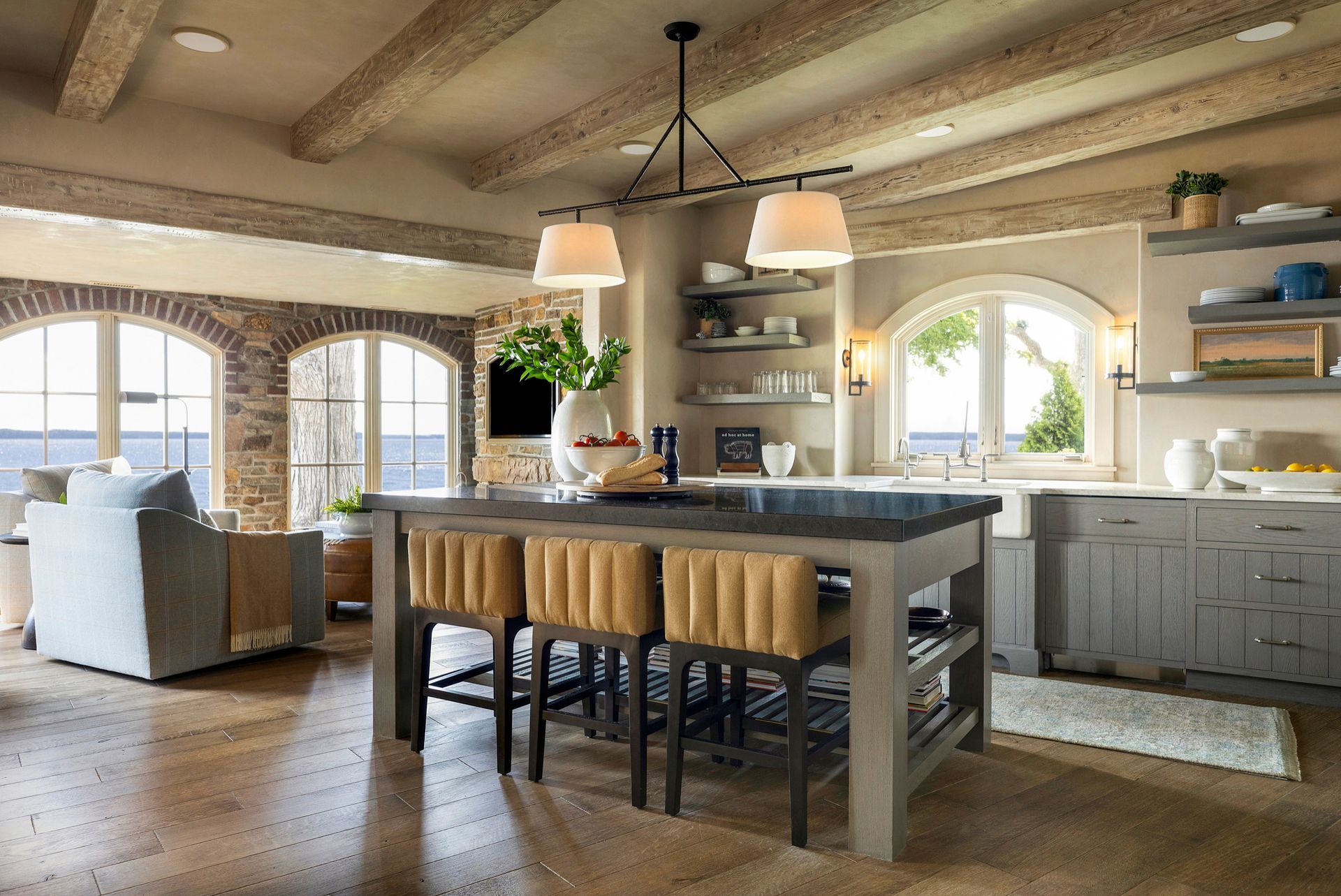 Design tip: Incorporate elements like exposed wood beams, stone backsplashes, or greenery to add depth and bring a natural feel into your home.